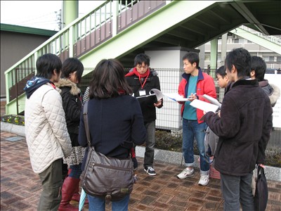 | 現地到着後、消防小屋にて調査概要を地域の方々に説明 | 現地到着後、三里木駅前にて企画書をもとにミーティング | |