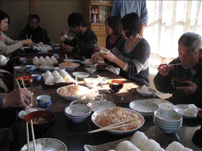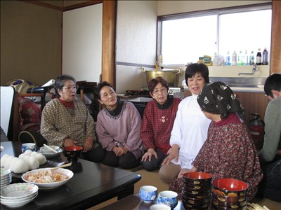 | 昼食を準備していだいた地域の女性の方々 | 三里木調査隊統括の院生・佐藤です | |
