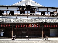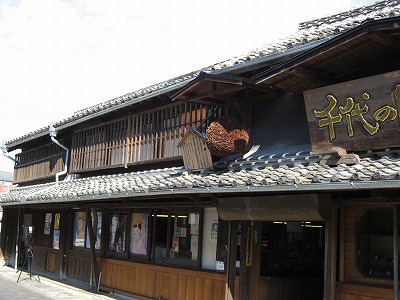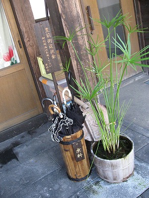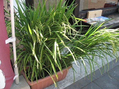 | こんなのもありました(下)。 いくつかの店頭に、プランタに植えられた稲が、稲穂をのぞかせています。きっと、 米米惣門ツアーにかかわるものではないかと思います。 |