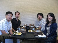 | 再発見の調査を一通り終え、八千代座横にあるお店で昼食を摂りながらの作戦会議。 |