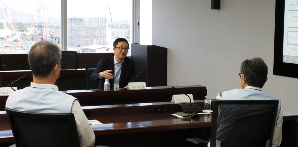 本学の黒田理事長がソニーセミコンダクタマニュファクチャリング株式会社を訪問し、代表取締役社長の山口 宜洋様や副社長の山下 満様、人事や産学連携のご担当者様と人材育成や大学運営などについての意見交換を行いました。