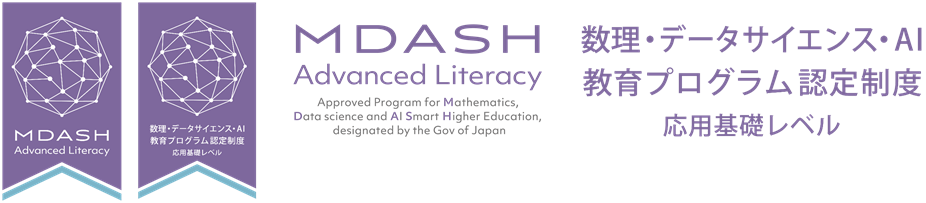 本学のデータサイエンス教育は「文部科学省 数理・データサイエンス・AI教育プログラム認定制度(応用基礎レベル)」に認定されています。(認定の有効期間:令和12年3月31日)