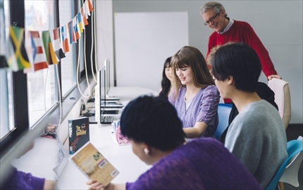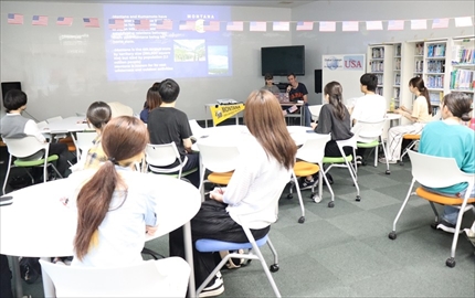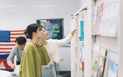 洋書、外国の雑誌、英字新聞などの貸出しを行っています。各種語学検定(TOEIC®、英語検定等)のための学習や英語以外の外国語の学習もできます。異文化に触れるために外国の映画やドラマをDVDやBlu-rayで鑑賞することができます。