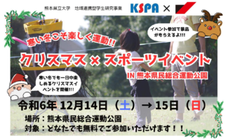 2024.12.06.Fri 8CATs 熊本県民総合運動公園でクリスマスイベントを実施します 総合管理学部小薗研究室では、地域連携型学生研究の一環として、(一財)熊本県スポーツ振興事業団様と連携し、「熊本県民総合運動公園の利用向上・魅力発信を目的としたプロジェクト」に取り組んでいます。 クリスマスイベントを202 […]