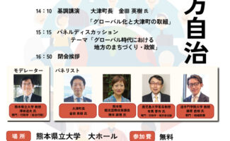 2024.08.01.Thu 7CATs 【受付を終了しました】公開講演会講座「グローバル化と地方自治」受講生募集 近年は、人・モノ・金・情報が国や地域を超えて地球規模で結びつく「グローバル化」が否応なしに進んでいます。熊本でも、世界的な半導体企業TSMCの進出やインバウンド客の増加など、それを実感することが多くなりました。言うまでも […]