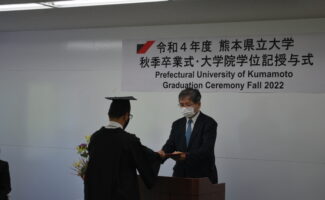 2022.10.21.Fri 9CATs 令和4年度 熊本県立大学・大学院 秋季卒業式・学位記授与式を行いました! 令和4年度熊本県立大学・大学院秋季卒業式・学位記授与式を令和4年(2022年)9月22日に本学大会議室で行いました。今年度は、学部生6名が卒業、大学院生3名(博士前期課程1名、博士後期課程2名)が修了しました。 堤裕 […]
