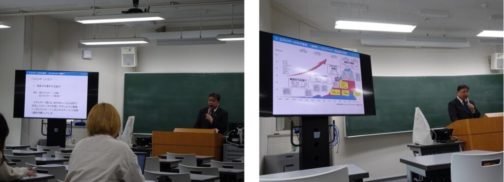 令和5年4月12日(水)九州電力熊本支店による協力講座「エネルギーと社会」が開講され、九州電力熊本支店企画・総務部企画グループ長の古江敏彦講師が教壇に立たれました。