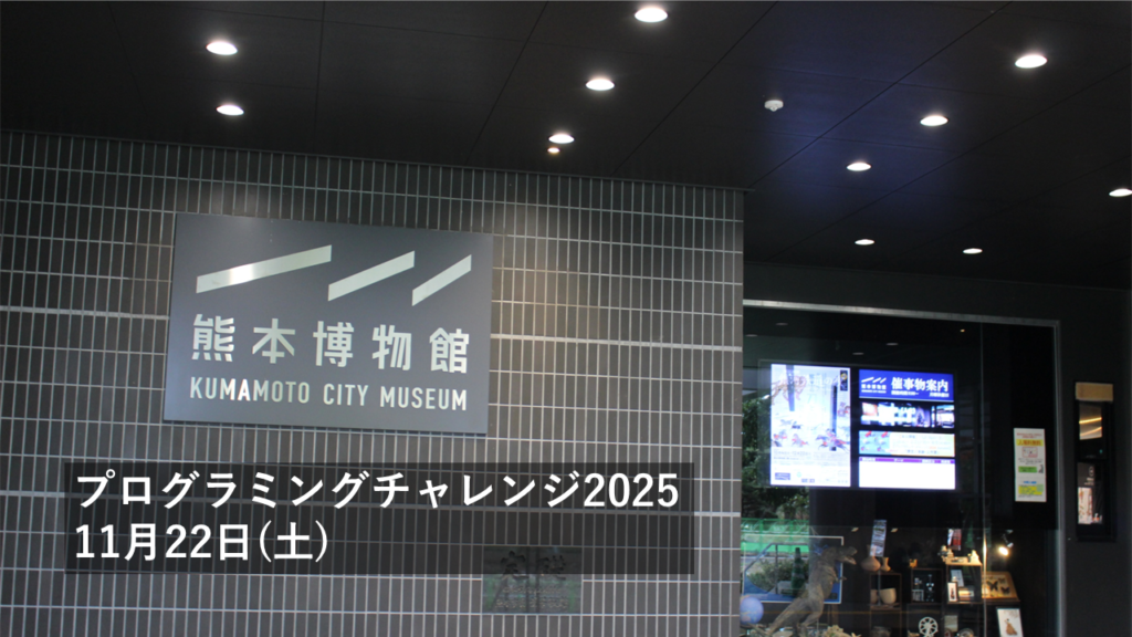 2025年11月20日(土)に、熊本博物館においてプログラミング体験イベントが実施されました。本イベントは,官学民連系のイベントとして、小中学生ならびに保護者や関係者を含めて80名を超える皆さまにご参加頂きました。当日は,ゲームアプリ作成やロボット操作など様々なプログラミング体験にチャレンジして頂きました。参加頂きました皆さまから「楽しかった!」「次も参加したい!」というお声を頂き、大成功のイベントとなりました。