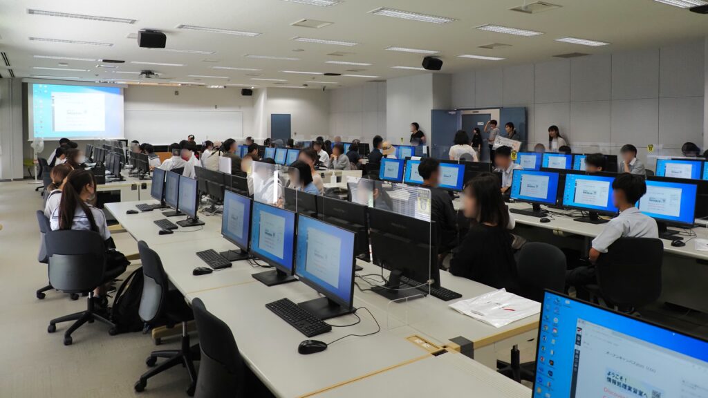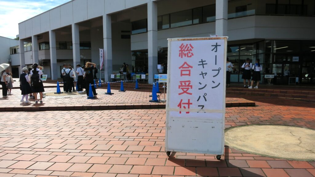 オープンキャンパスは、高校生等の皆さんに、実際に本学の雰囲気を体験しながら本学の教育・研究内容や入試制度について理解を深めていただくことを目的に開催したもので、教員及び学生による各学部・学科・専攻の説明会や、学生スタッフによるキャンパスツアー、模擬授業、通常は公開していない学部施設の見学、ゼミ体験、個別相談会のほか、学食体験会場では学生自治会によるサークル紹介など多くのプログラムを実施し、活気に満ちたイベントとなりました。
