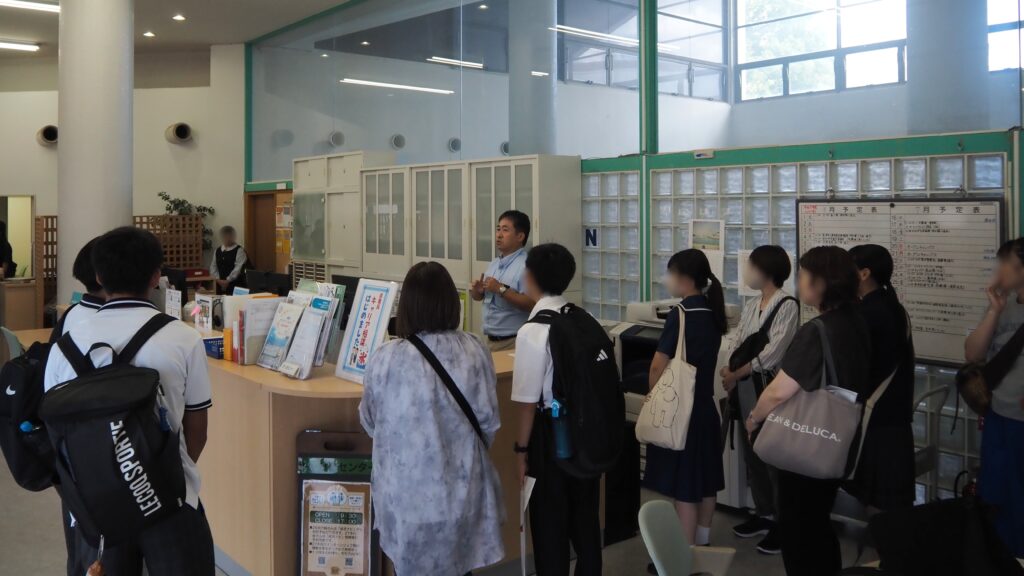 キャンパスツアーは、学生スタッフによる大学概要・キャンパスライフの紹介の後、熊本県立大学ならではの様々な施設(図書館、国際教育交流センター、情報処理実習室、キャリアセンター)を回るオープンキャンパス限定で行っているツアーで、両日とも3回開催しました。
