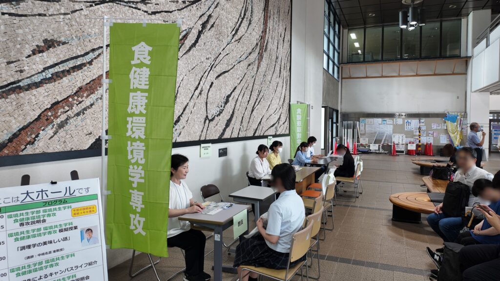 食健康環境学専攻では、専攻説明会、模擬授業、在学生によるキャンパスライフ紹介、教員と学生による個別相談コーナーを実施しました。