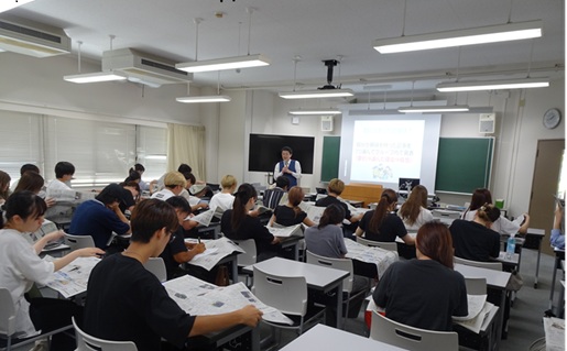 令和7年9月30日(火)、熊本日日新聞社による協力講座「マスメディア論」が開講され、熊本日日新聞社NIE・NIB戦略室専門委員の今村浩講師が教壇に立たれました。