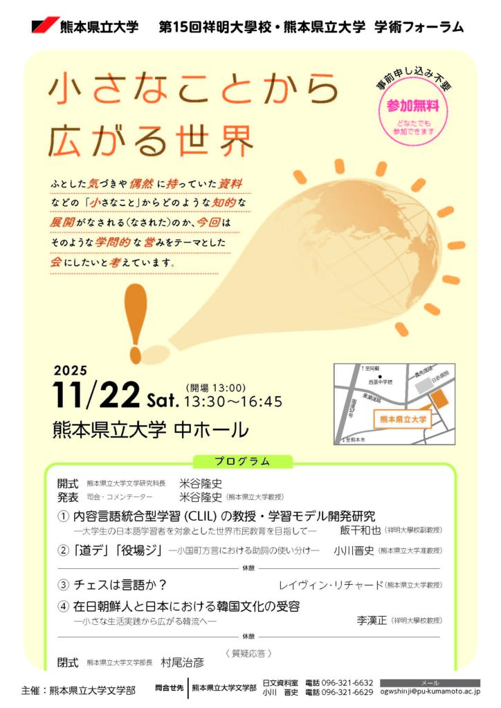 | 主 催 | 熊本県立大学文学部 |