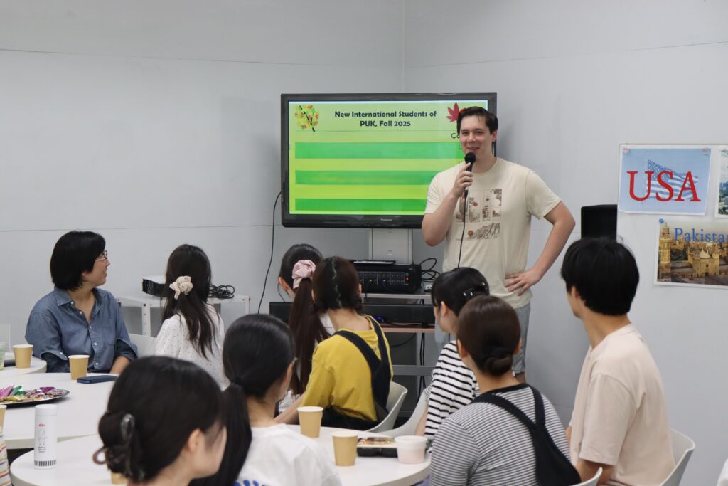 国際教育交流センター(CIEE)では、2025年10月8日(水)の昼休みに、本年度後学期から入学した、アメリカ・モンタナ州立大学ビリングス校からの交換留学生2名(Josephさん、Jaredさん)、水銀研究留学生2名(Megaさん、Ihsanさん)、国費研究生1名(Anizaさん)をゲストに迎え、留学生歓迎会を開催しました。