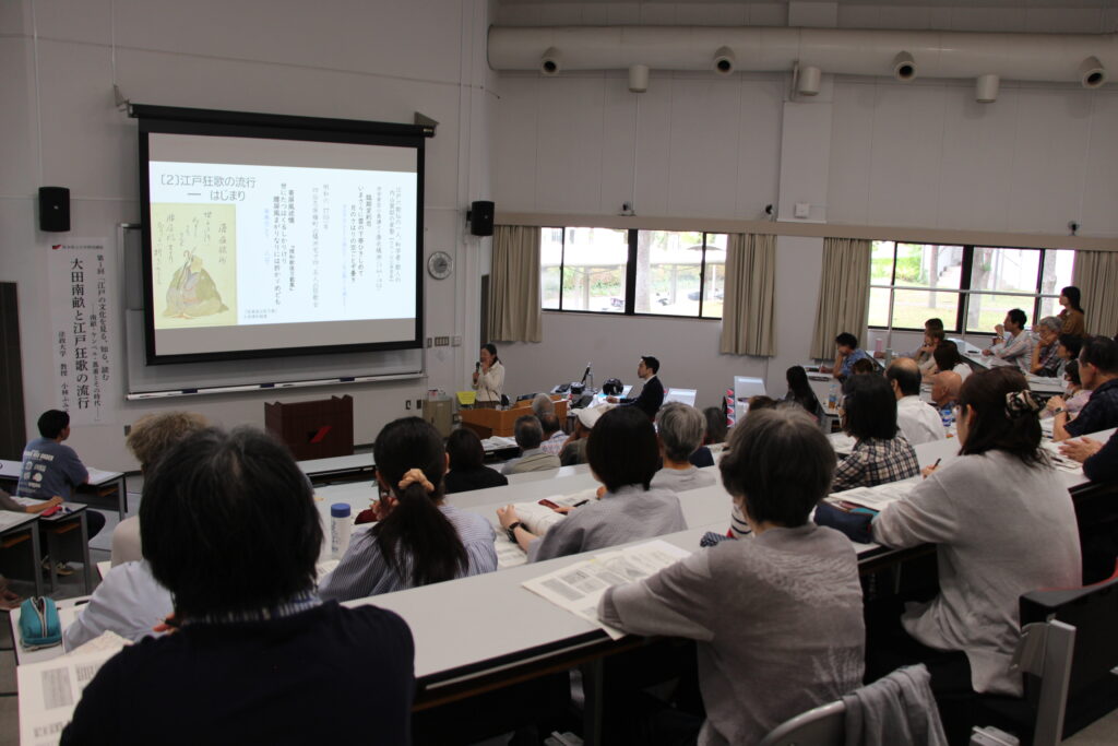 本学文学部は、江戸時代の文学・文化の魅力や特色の紹介を趣旨として、3 名の専門家を講師とする公開講座を企画し、その第1回目を10月4日(土)に開催致しました。71 名の参加者があり、10 名の本学学生以外は、幅広い年齢層の方々にお集まりいただきました。