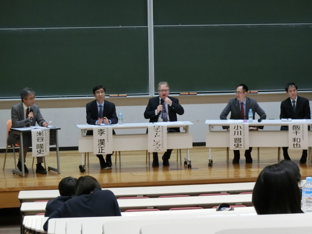 韓国から2名のゲストスピーカー(李教授、飯干副教授)をお迎えし、文学部からも2名のスピーカー(レイヴィン教授、小川准教授)が登壇しました。「小さなことから広がる世界」というテーマに合わせた4件の発表が行われた後には、フロアからの質問に答える時間も設けられました。およそ70名の参加者からは質疑応答の時間には答えきれないほど多くの質問が出て、たいへんに活発な議論ができました。