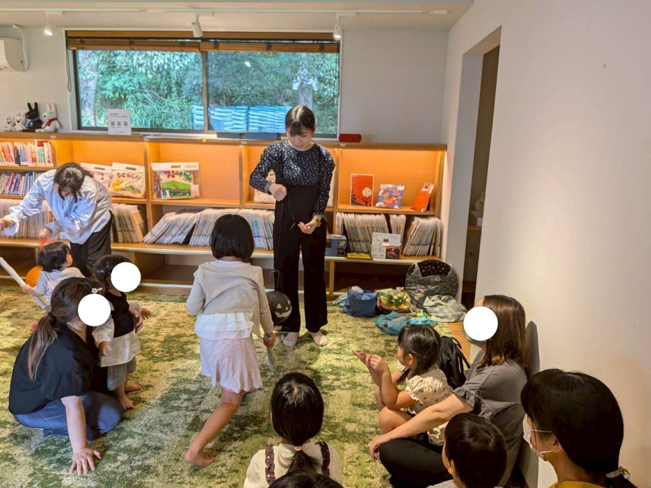 おはなし会の始まりと終わりには、歌とダンスを一緒に身体を動かして楽しみました。