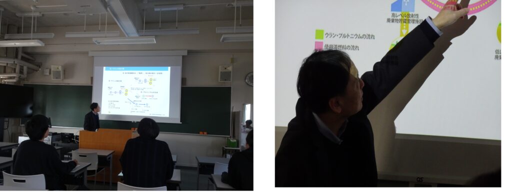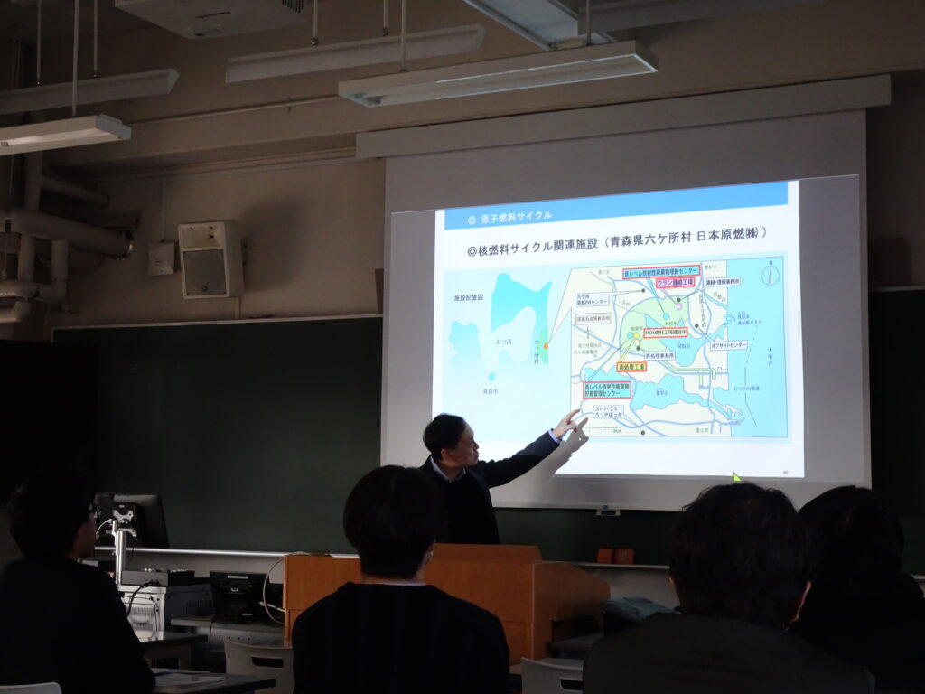この授業では、年明けに鹿児島の川内原子力発電所の見学を予定しています。そのフィールドワークに向けて、「原子力発電のしくみと現状」というテーマで講義が行われました。