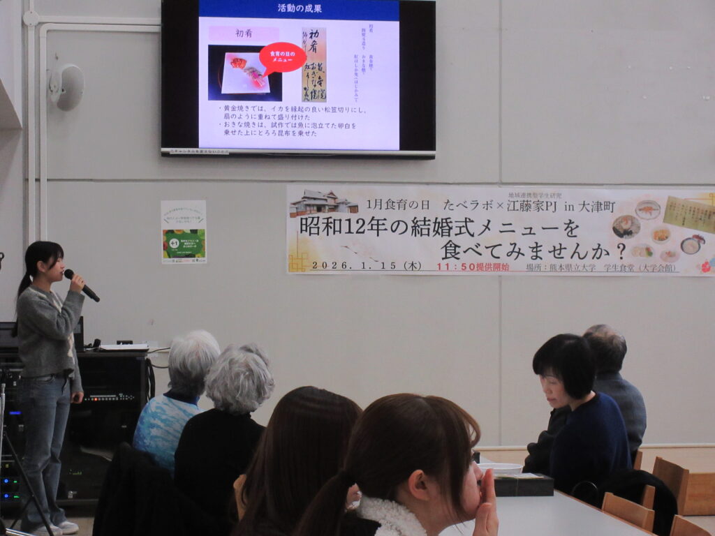2026年1月15日に食育の日「昭和12年の結婚式メニューを食べてみませんか?」を開催致しました!今年度は、「くまもとの雑煮(令和4年度から毎年県内各地域のお雑煮を紹介している企画)」のスピンオフ企画です。