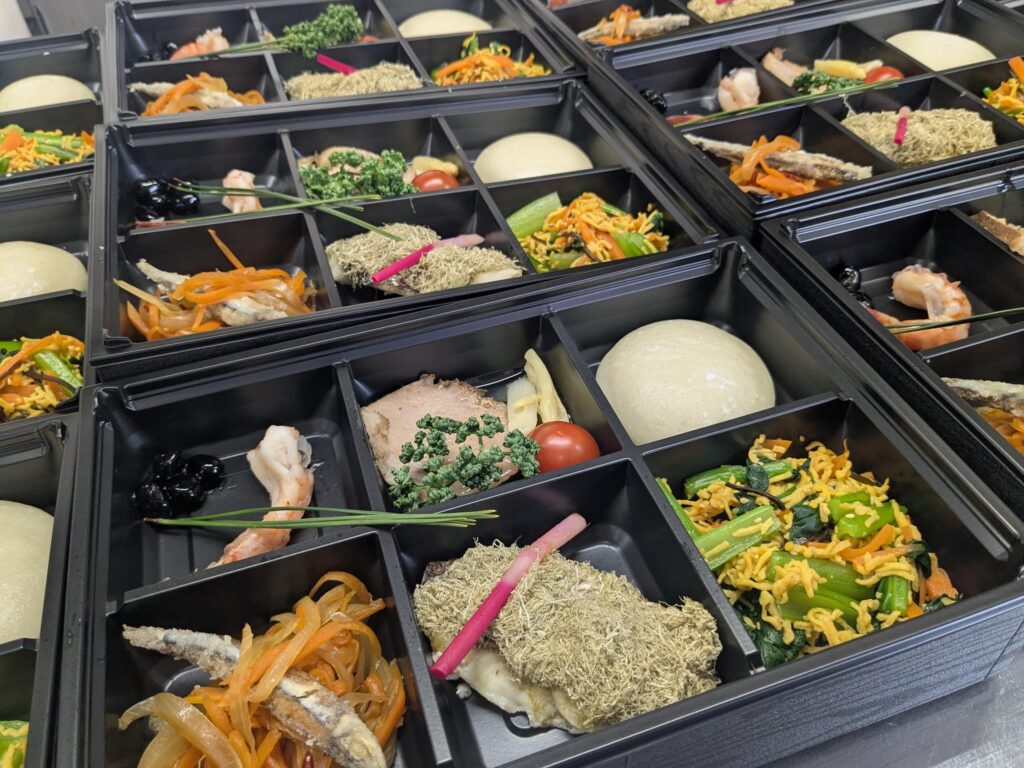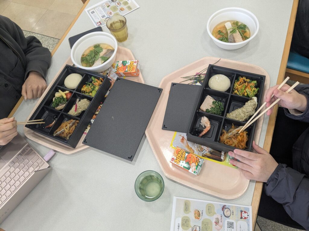 購入された方々が、丁寧に盛り付けられた彩りの良いお弁当を、ひとつひとつチラシを見ながら喜んで食べられている姿が印象的でした。