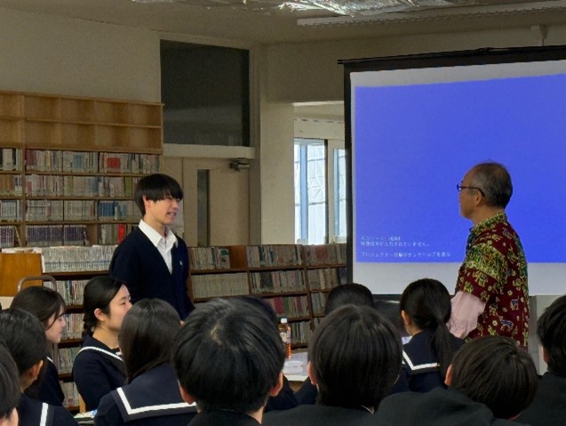 最後に、生徒代表として2年生の荒平大河さんが、講演への感謝の言葉を述べました。講演後には国際協力に関心を持つ3名の生徒との座談会も行われ、活発な意見交換が行われました。