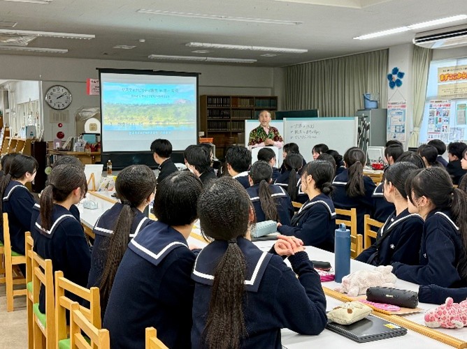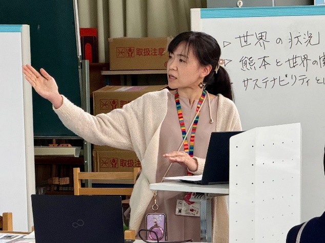 講義の終盤には、生徒を対象に実施した「熊本や海外に対する意識」に関するアンケート結果を共有。これからの熊本のあり方や、自分たちが思い描く「住みたい熊本」を実現するために、そして持続可能な社会づくりのために、一人ひとりがどのように行動すべきかを考えてほしいと呼びかけ、講座を締めくくりました。