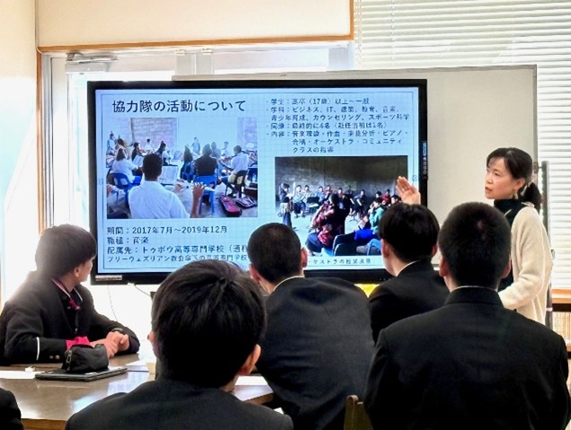 一般市民が参加できる国際協力の例として、JICA熊本デスクの尾上香織推進員が、青年海外協力隊としてトンガに派遣された経験を紹介。現地の抱える課題、そして現地の人々のサステナブルな暮らしの様子を共有しました。