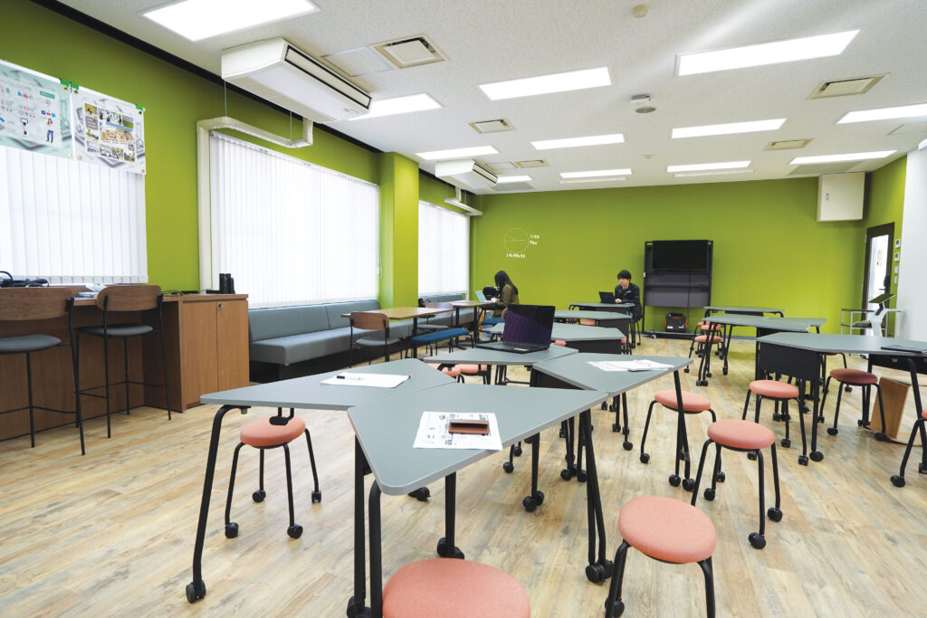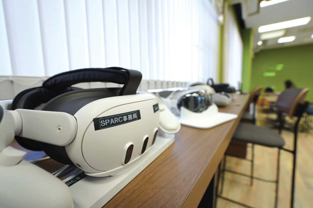 SPARCの拠点施設で、講義室を2部屋くっつけたほどの広さのSLC。令和4年度に創設された部屋は現在、総合管理学部の講義や自主ゼミ、イベントなどで利用されている。SPARC事務局の日比野友博特任講師に案内してもらった。学生の自主的な研究拠点ではあるが、「高価な機材が多いため、利用にはSPARC事務局への申請が必要」。