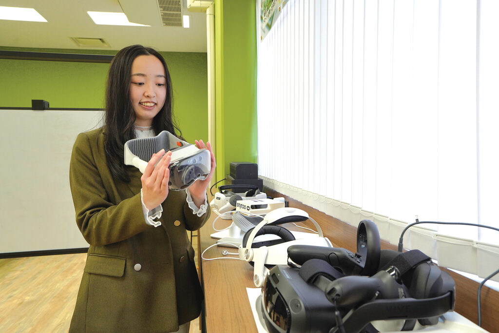SLC(スマートラーニングコモンズ)を拠点に活動しているのは、ゼミに配属される前に研究活動の素養を養うため発足した「うさぎラボ」の1,2年生たち。総合管理学部2年の田中理莉杏(りりあ)さんは、最先端技術を活用しながら、日々慣れない研究活動に取り組んでいます。
