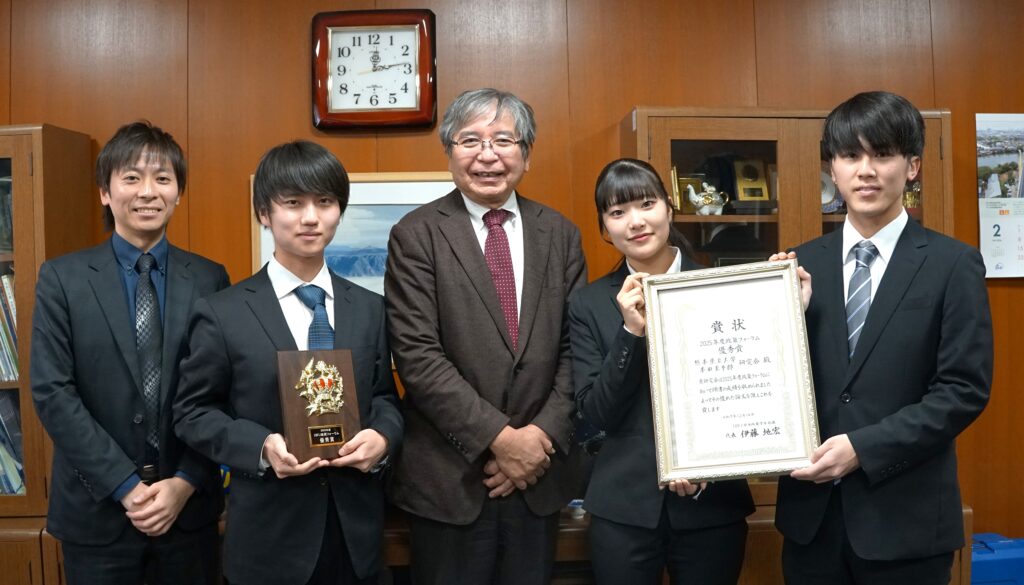 また、令和8年(2026年)2月6日、堤学長に優秀賞受賞の報告を行いました。