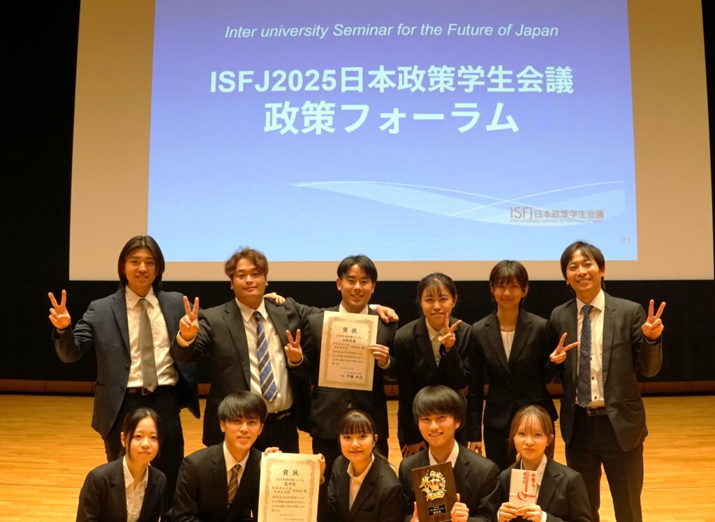 この度、総合管理学部総合管理学科本田研究室の学生が、令和7年(2025年)12月13日・12月14日に明治大学駿河台キャンパスで行われたISFJ日本政策学生会議の政策フォーラムにて、優秀賞(総合3位)・分科会賞を受賞しました。