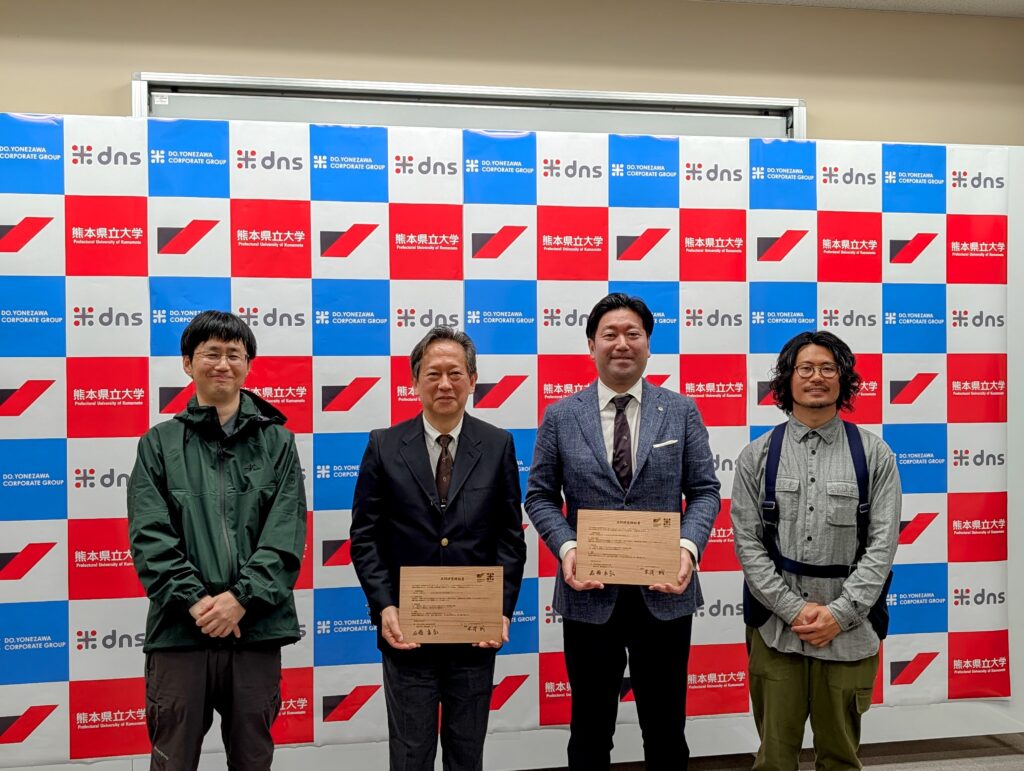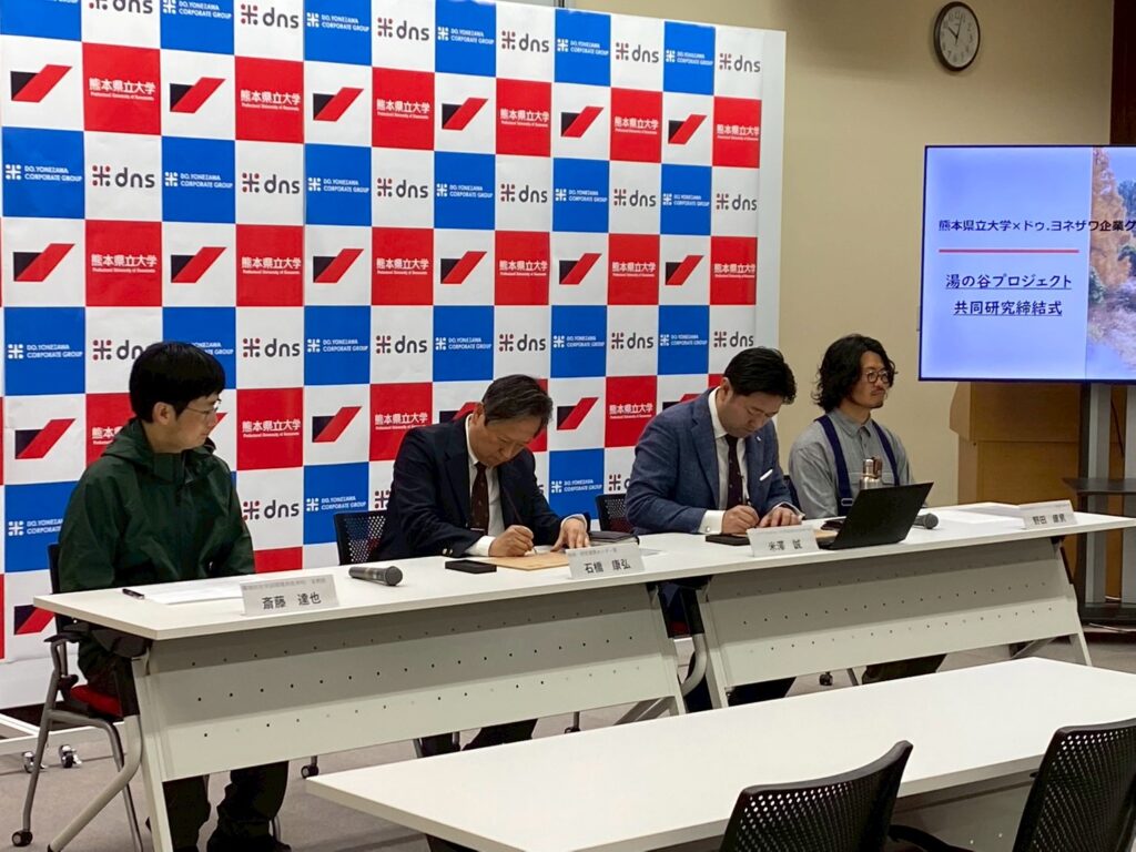 本学ではこの度、ドゥ.ヨネザワ企業グループの株式会社DNSと「湯の谷プロジェクト」に関する共同研究契約を締結し、4月10日(金)に本学において締結式を行いました。