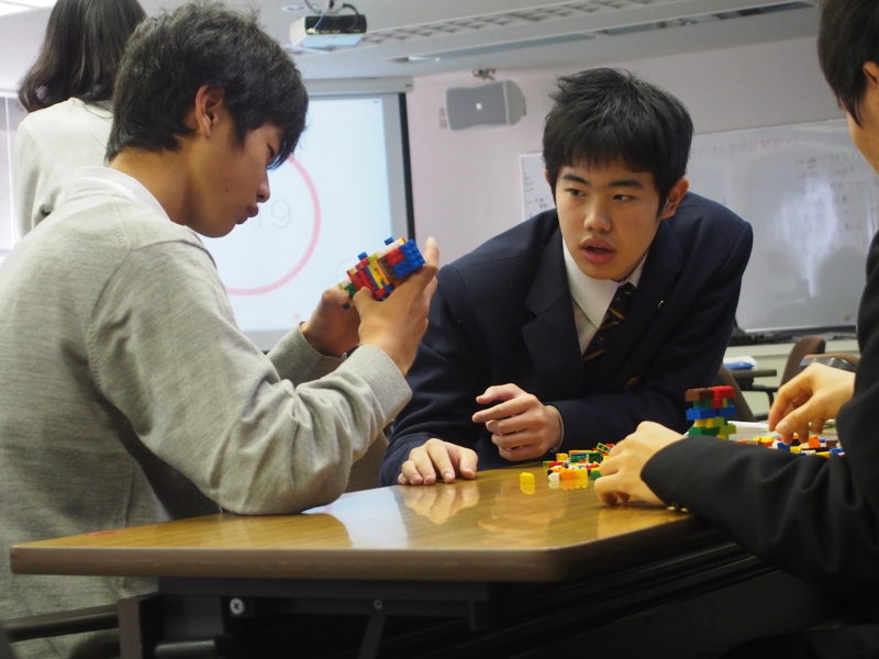 また、昼休み後に「レゴを積み上げて天井まで届かせよう!」というアイスブレイクを班ごとに行いました。机から天井までレゴを積み上げ、手を離しても自立して立つようにしなければならないこのゲーム。これが意外と難しいのです!