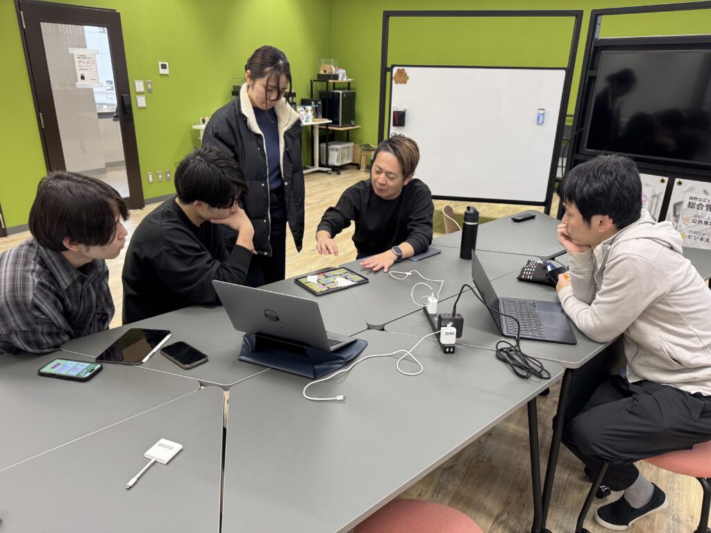 弊ラボからは、2022年に1名、2023年に2名、2024年に1名の入賞者(award recipient)を輩出しており、弊ラボとしては三年連続の入賞者輩出を果たしました。そして今年は、弊ラボから過去最高人数の学生たちがSSCに挑みます。そこで、2025年1月14日(火) 13:00〜18:00、本学スマート・ラーニング・コモンズ (Smart Learning Commons: SLC) にて、開発するアプリや執筆するエッセイに関するブラッシュアップを行いました。このブラッシュアップには、Apple Worldwide Developer RelationsのTechnology Evangelistのお二人が東京六本木のオフィスから駆けつけてくださいました!