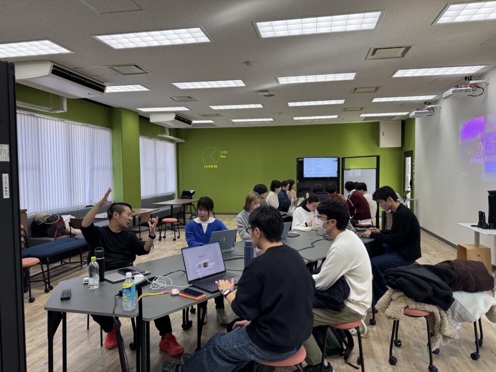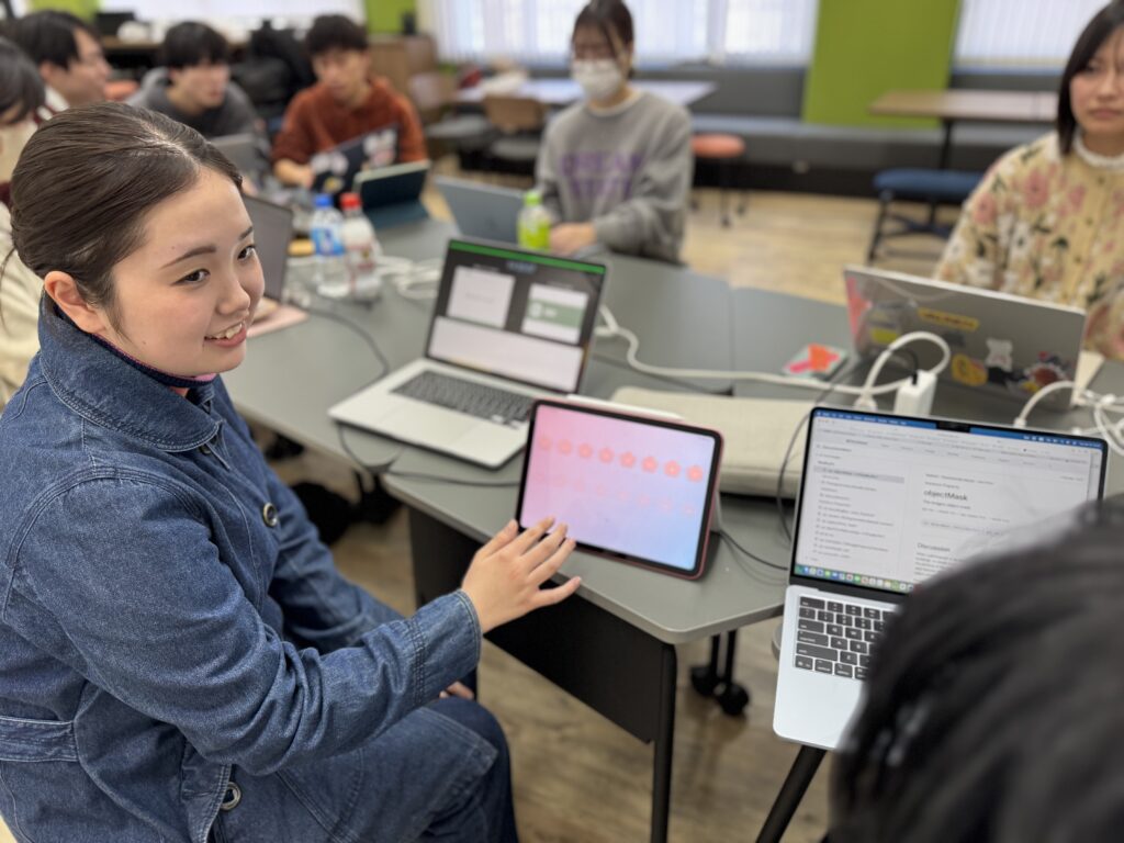 弊ラボからは、2022年にWinner 1名、2023年にWinner 2名、2024年にWinner 1名、そして2025年にはWinner 1名およびDistinguished Winner 1名を輩出しており、弊ラボとしては四年連続の入賞者輩出を果たしました。そして今年も、弊ラボから多数の学生たちがSSCに挑みます。そこで、2026年1月13日(火) 13:00〜17:00、本学スマート・ラーニング・コモンズ (Smart Learning Commons: SLC) にて、開発するアプリや執筆するエッセイに関するブラッシュアップを行いました。このブラッシュアップには、Apple Worldwide Developer RelationsのTechnology Evangelistであるお二人が東京六本木のオフィスから駆けつけてくださいました!