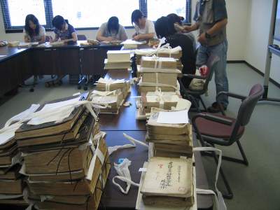 本学学術情報メディアセンター所蔵「徳永家文書」の整理風景