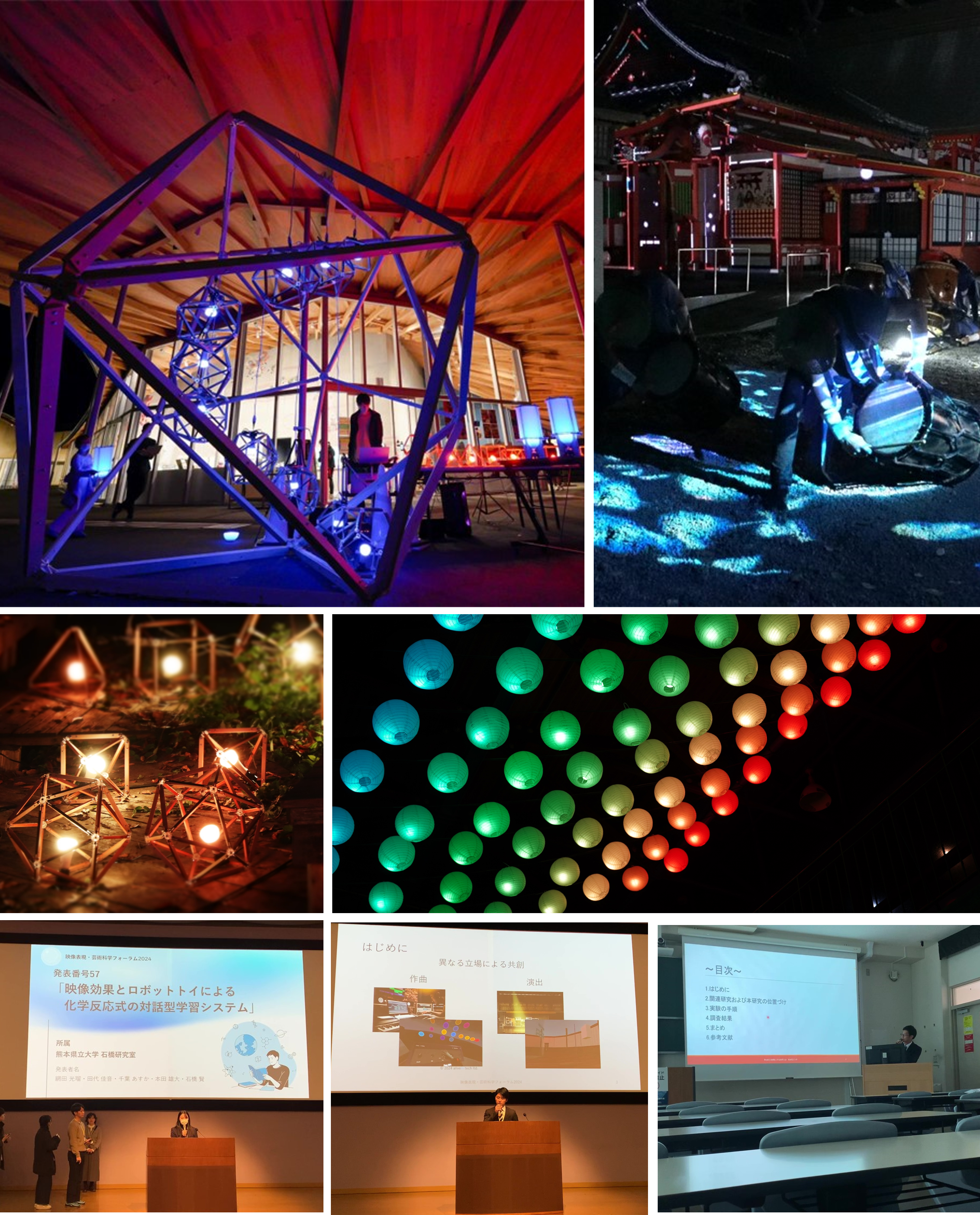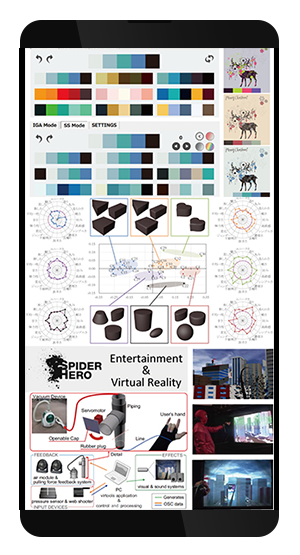 【ものづくり】人の手の動きに連動して線点対称のお絵かきができるシステム,人の声に応じて様々なイラストが出現するアプリ,無限に水遊びができるVR作品,心拍数を活用したVR作品,県大川でのプロジェクションマッピング,疑似プラネタリウム,風覚提示VR,バンジージャンプVR,星と海のプロジェクションマッピング,アイスブレイク用ARゲーム,プロジェクションアラームクロック,古典文学用VR,衣服検知AIカメラ,エクササイズVR「アニマルトレーニング」,マイマップAIアプリ